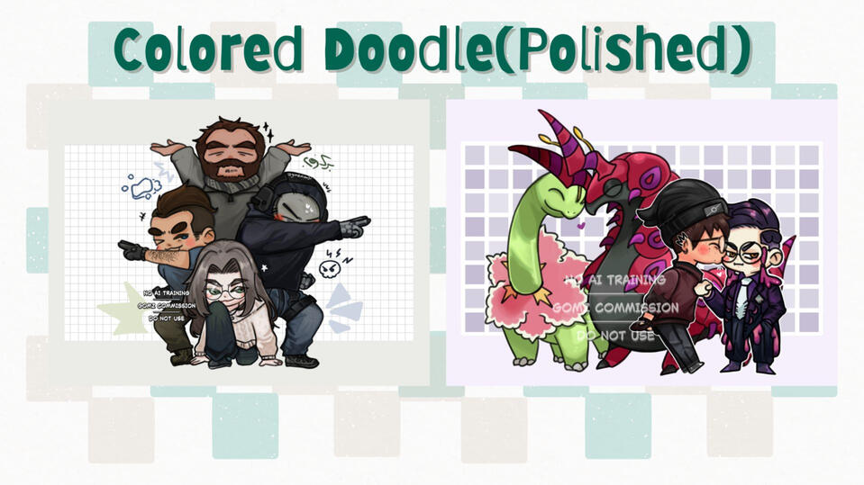 | Colored Doodle | 25USD | + 10USD per character (max 4) + 15USD polish look |