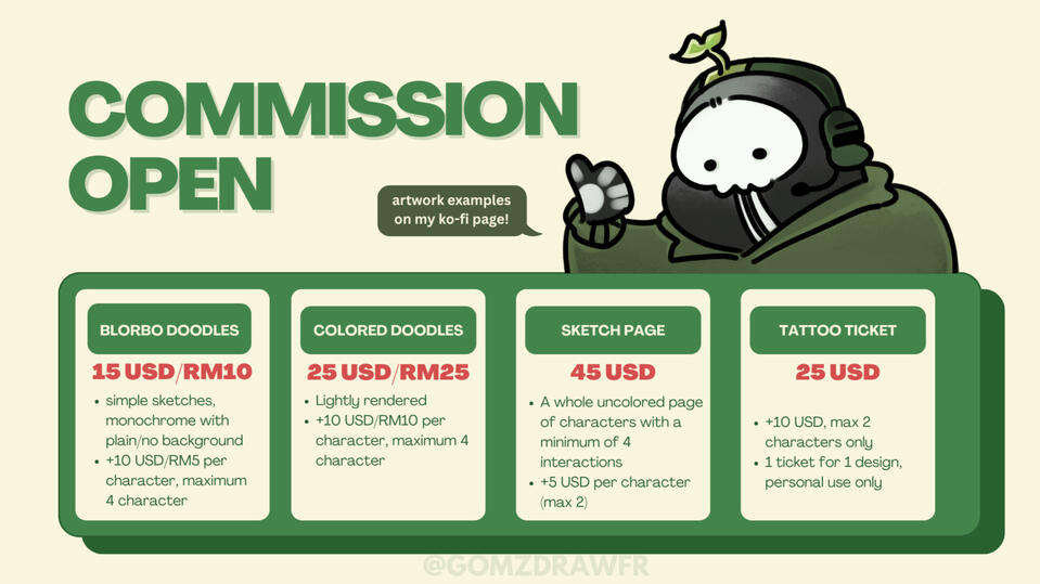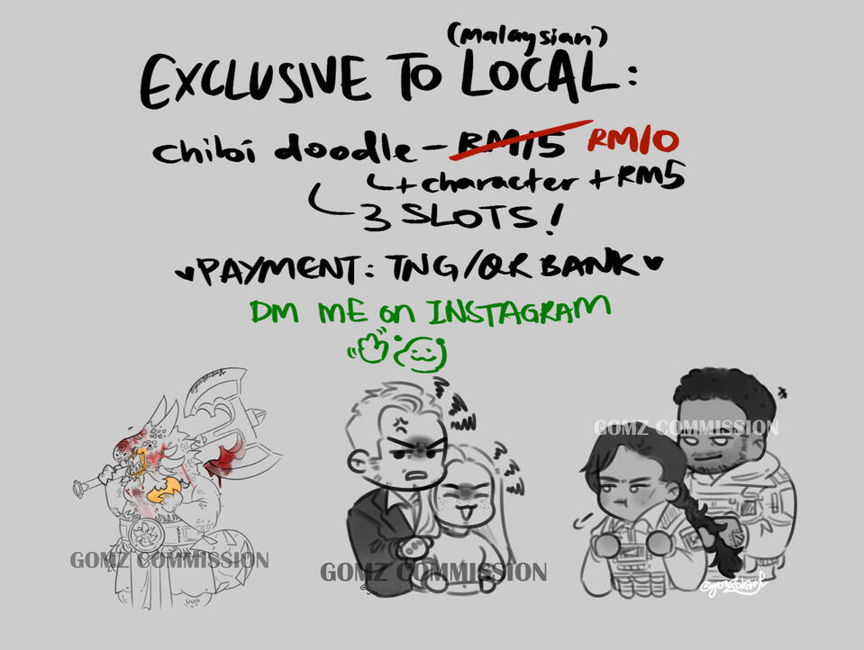 For Malaysian order (Blorbo Doodles and Colored Doodles), DM me via instagram :D payment via TnG or Bank Transfer!