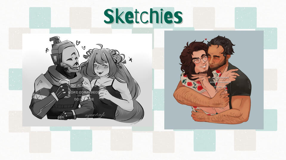 | Sketchies | 30USD | Sketches, half-body with grey or white background + 15USD per character (max 2) +10USD color |